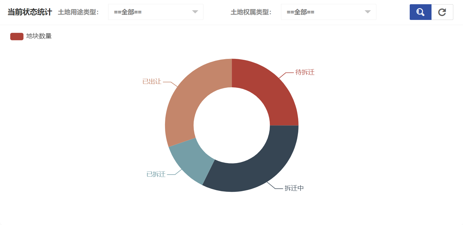 在地块统计中可以看到土地用途类型统计、土地权属类型统计、当前状态统计,当前状态统计如图所示: