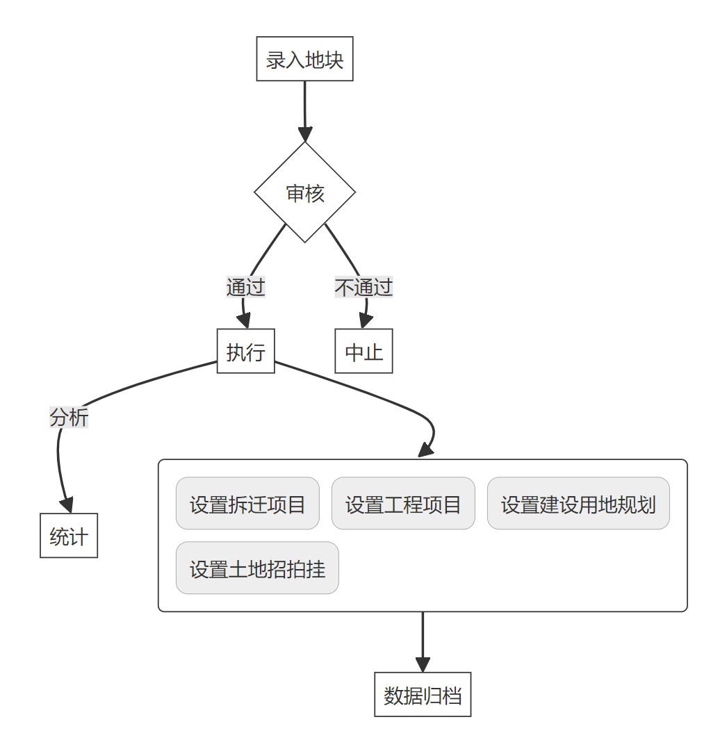 地块管理功能定义:数据录入方面,包括地块编码、名称等基本信息;查询方面提供条件筛选和排序等功能以便快速定位所需信息;变更方面支持修改或删除已有记录以保持准确性;审核环节需部门领导确认操作合法性与合规性;统计分析则涵盖面积汇总、状态分布等多种维度指标展示。