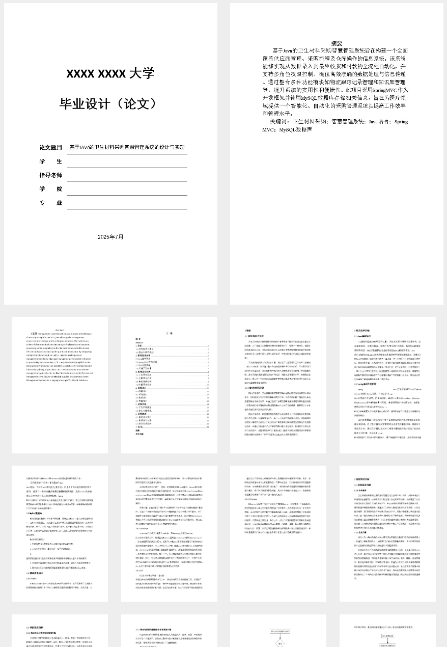 选择该题目是因为卫生材料采购过程中存在诸多痛点,如信息传递滞后、操作繁琐耗时等。开发背景分析显示当前市场尚未出现完全解决这些问题的系统化解决方案。需求方面需涵盖供应商管理、材料管理和采购流程控制等功能模块以提升工作效率与准确性。系统设计中采用SpringMVC框架确保高可扩展性和维护性,并使用MySQL数据库增强数据存储和检索效率。此外,还需考虑前端展示及用户交互体验优化。开发过程中注重细节处理如权限分配、日志记录等,保证系统的稳定性与安全性。