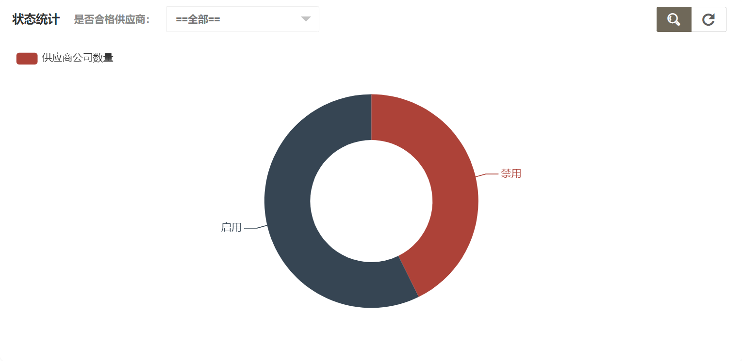 在供应商公司统计中可以看到是否合格供应商统计、状态统计,状态统计如图所示: