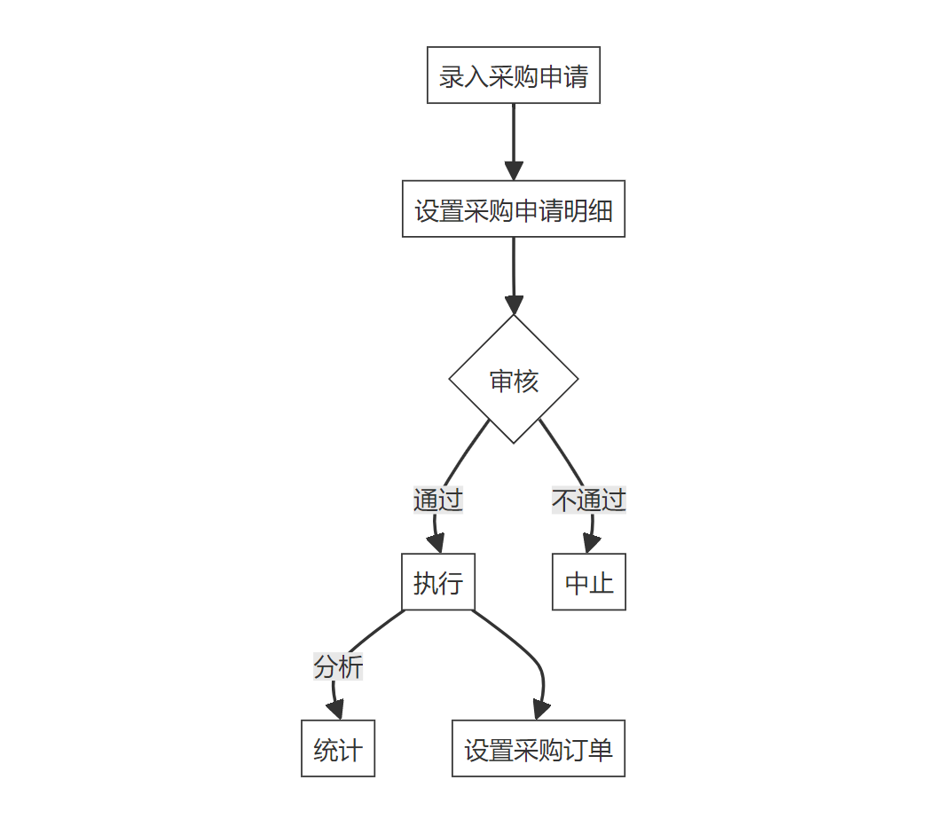 采购申请管理功能定义涵盖数据录入、查询、变更及审核,字段包括编码、部门、申请人、日期等。员工可录入新申请或修改现有记录;系统提供检索与展现机制供查看具体信息;审批人负责审查并给出意见以确保材料符合需求且预算合理;统计分析则汇总各项指标,如采购频次和金额,帮助管理部门做出更明智决策。
