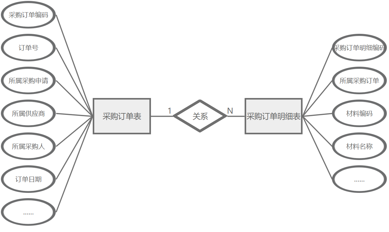 采购订单管理主要属性包括:采购订单编码、订单号、所属采购申请、所属供应商、所属采购人、订单日期、期望交货日期、交货地址、付款条款、状态、订单总金额。
