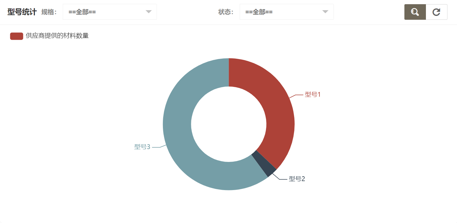 在供应商提供的材料统计中可以看到规格统计、型号统计、状态统计,型号统计如图所示: