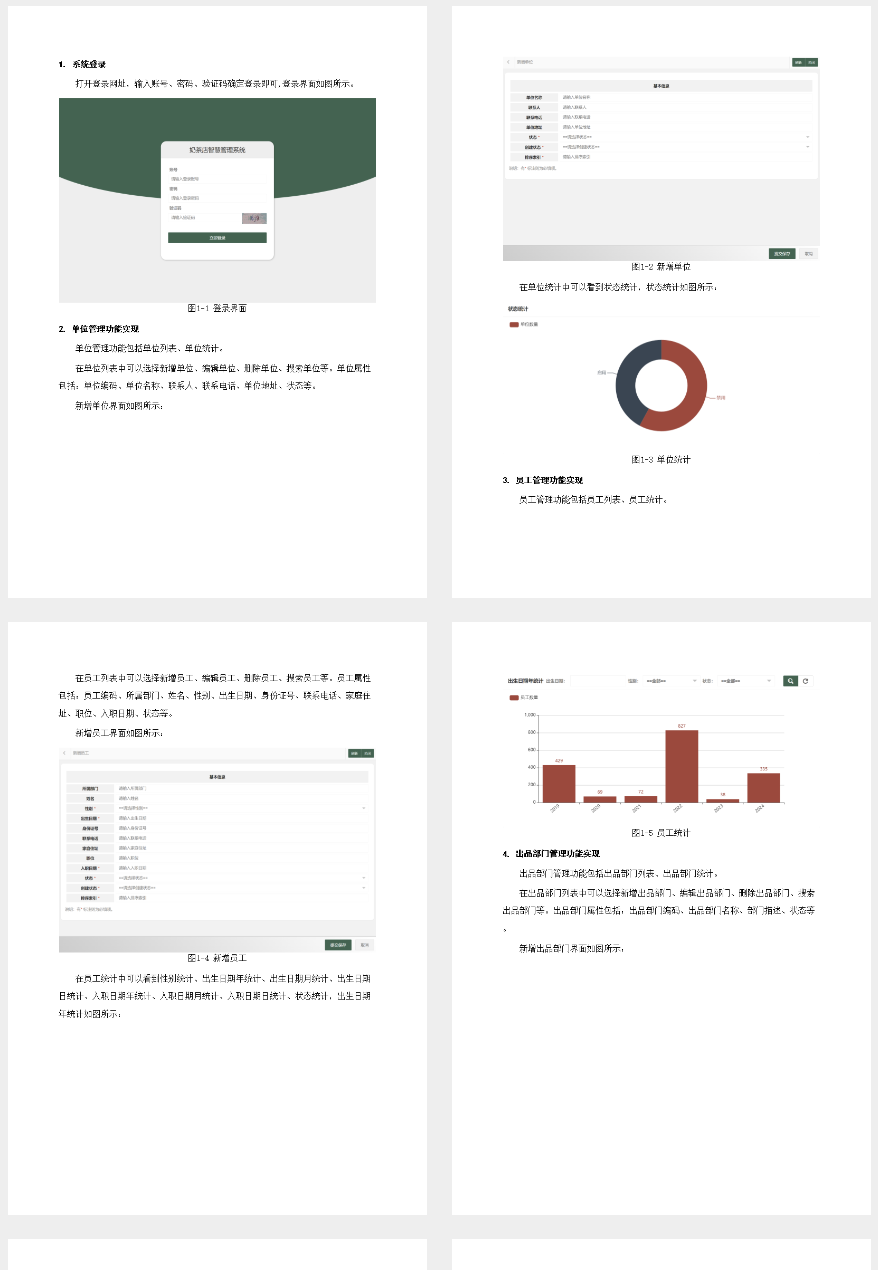 单位管理中参与的角色分别为普通员工和部门领导。普通员工角色负责数据录入、查阅执行及信息变更等操作,具体用例包括:(1) 添加新单位;(2) 更新现有单位的信息;(3) 删除无用的单位记录。(4) 查看所有单位列表。而部门领导则主要进行数据审核与统计分析相关活动,例如:(5) 审核普通员工提交的数据变更请求;(6) 统计并生成单位管理报表。上述角色详细描述涵盖了从新增、修改到查看以及审批等全流程操作。