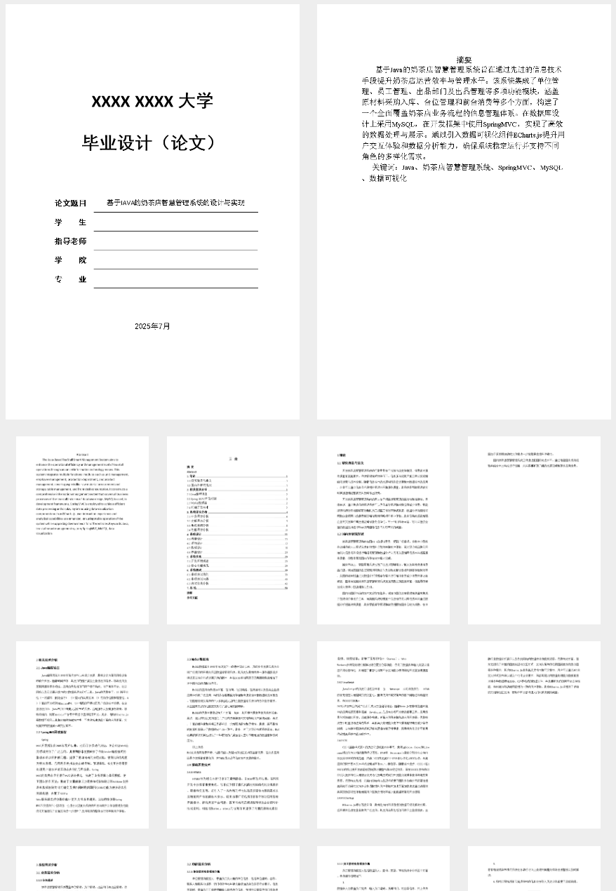 奶茶店智慧管理系统的设计与实现,旨在为传统奶茶经营提供全面的信息化解决方案。系统涵盖单位管理、员工管理、出品部门及出品管理、供货商和原材料管理等多个模块,通过引入SpringMVC开发框架与MySQL数据库技术,简化了信息录入、查阅执行等日常操作,并强化数据审核与统计分析功能,确保管理人员能够高效准确地进行决策。 该系统的创新之处在于将奶茶店的各个环节进行了系统化的整合。相比传统选题单一或过于复杂的思路,此设计更注重实用性与可扩展性,适用于不同规模和类型的奶茶店铺。通过直观的数据展示及灵活的功能设置,系统不仅提高了管理效率,还为员工提供了便捷的操作体验。 模块化的设计使得零基础开发者也能轻松上手。每个功能点的职责清晰划分,便于按需学习掌握相应技能;同时,提供详尽的技术文档与实例指导,确保初学者能够快速进入角色并进行实际操作。此外,系统中融入的数据可视化组件进一步提升了用户体验,并通过图表形式直观展示各种业务指标的变化趋势。 整体而言,该奶茶店智慧管理系统不仅满足了当前管理需求,还为未来扩展奠定了坚实基础。其全面的功能覆盖、清晰的角色定义以及易于学习的技术特点使其成为一款具备广泛应用前景的信息化工具。