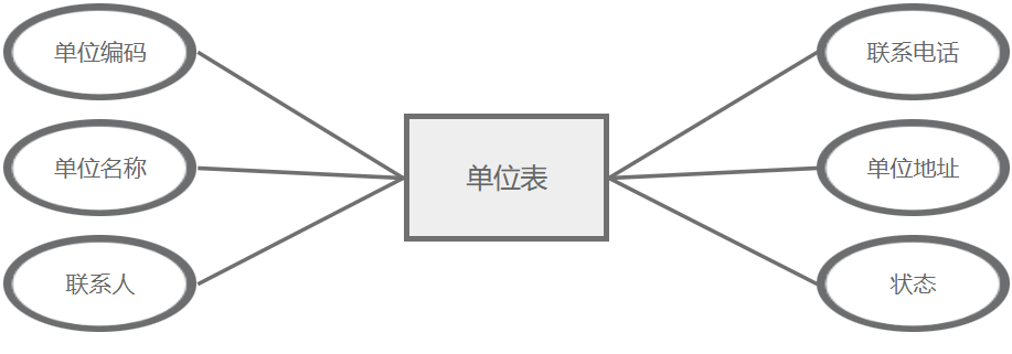 单位管理主要属性包括:单位编码、单位名称、联系人、联系电话、单位地址、状态。
