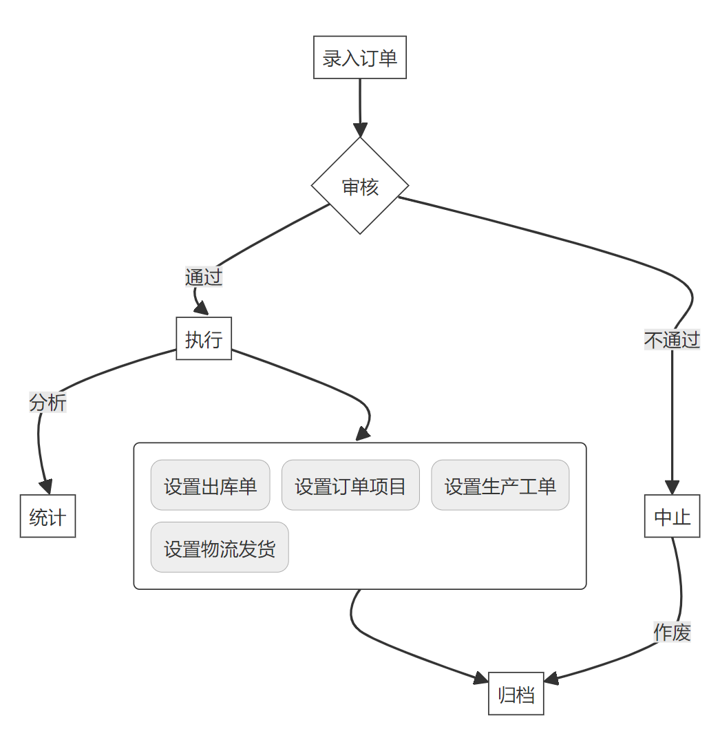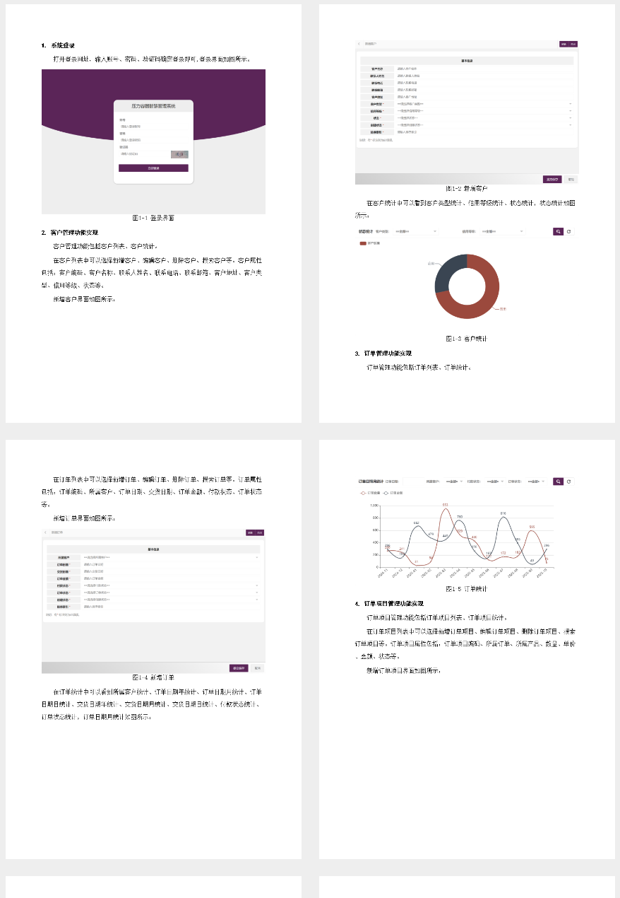 订单管理功能定义:数据录入方面,输入客户编码、所属客户、订单日期等信息;查询方面,按客户名称或订单号检索相关信息;变更方面更新付款状态或订单金额等内容。审核方面部门领导可对已提交的订单进行审批确认,并查看详细记录及修改审阅意见。统计分析方面提供图表展示订单数据趋势和关键指标如订单数量、总金额等信息,帮助管理者做出决策。