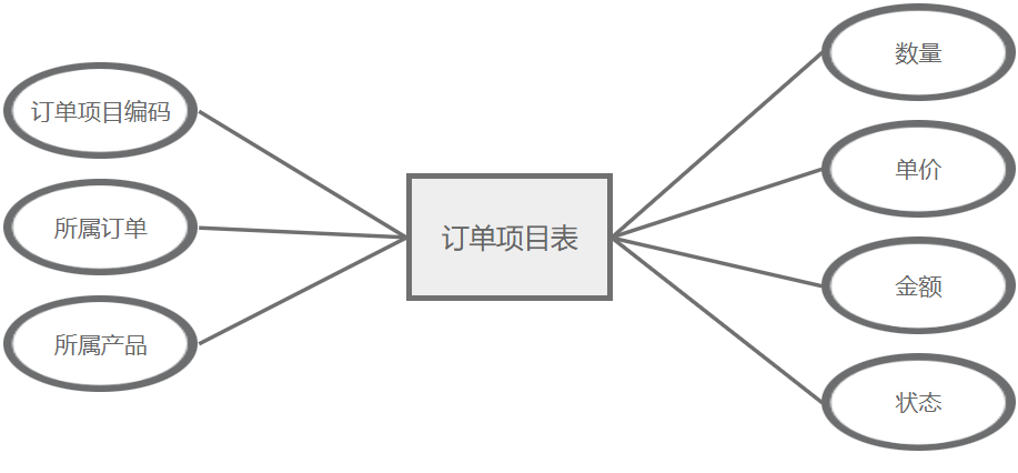订单项目管理主要属性包括:订单项目编码、所属订单、所属产品、数量、单价、金额、状态。
