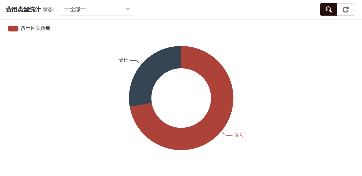 在费用种类统计中可以看到费用类型统计、状态统计,费用类型统计如图所示: