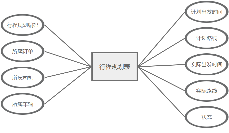 行程规划管理主要属性包括:行程规划编码、所属订单、所属司机、所属车辆、计划出发时间、计划路线、实际出发时间、实际路线、状态。