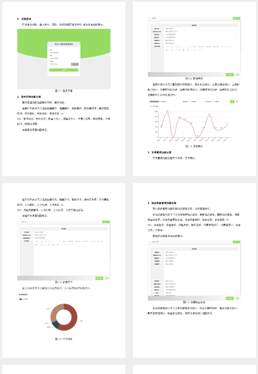文书管理主要字段属性包括:文书编码、标题、类型(0-99)、关联案件、内容及状态。普通员工负责数据录入与信息变更,部门领导进行审核;系统提供便捷的数据查询功能以支持工作需要,并允许对记录进行修改或删除操作。对于已经建立的文档,系统支持全面的信息检索和过滤条件设置以便快速定位所需文书。审批流程中,需填写申请内容并指定当前审批人,由其决定是否通过及给出意见,确保所有提交的内容均经过严格审核以保证准确性与合规性;同时提供统计分析工具对各类案件相关文书使用情况进行汇总并生成报表用于辅助决策过程。
