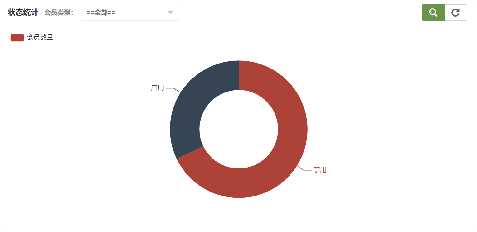 在会员统计中可以看到会员类型统计、状态统计,状态统计如图所示: