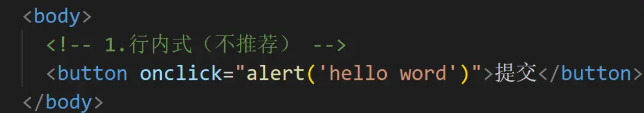 行内式:直接把代码书写在标签内。(一般不推荐书写,容易造成内面混乱,代码冗余)