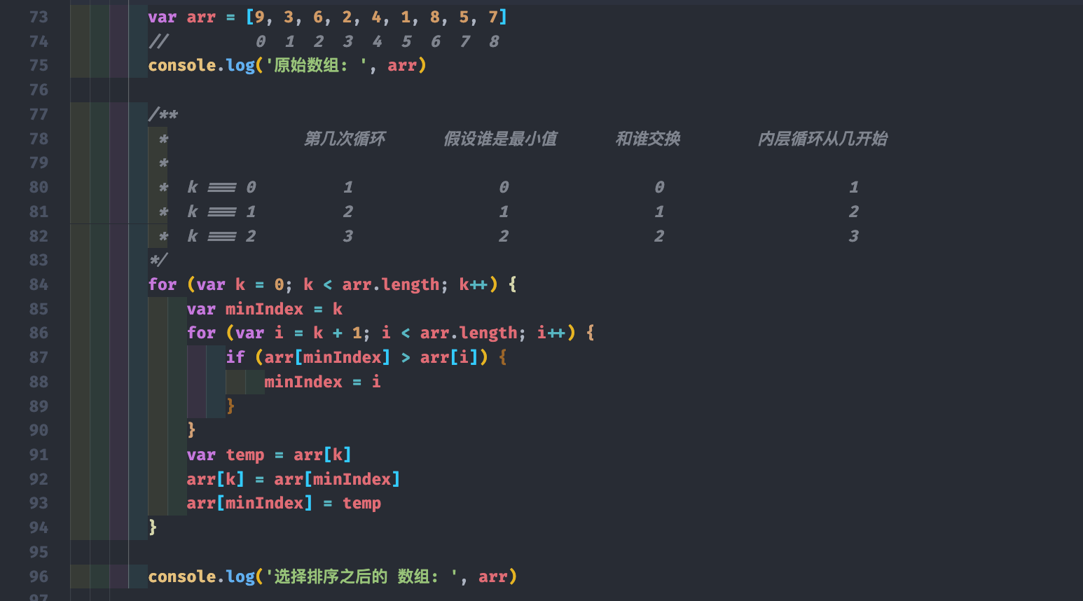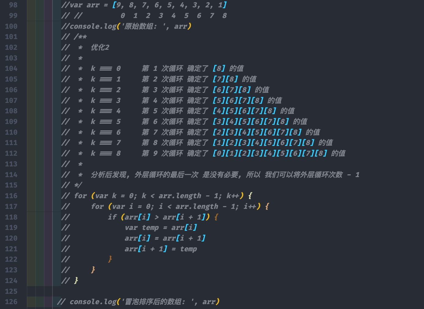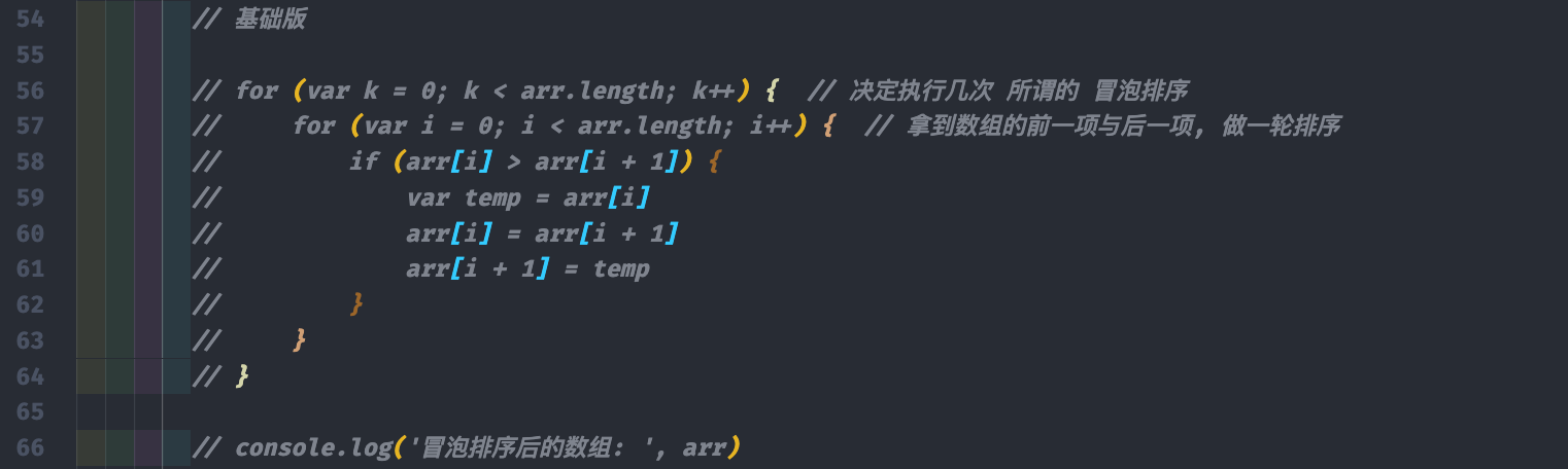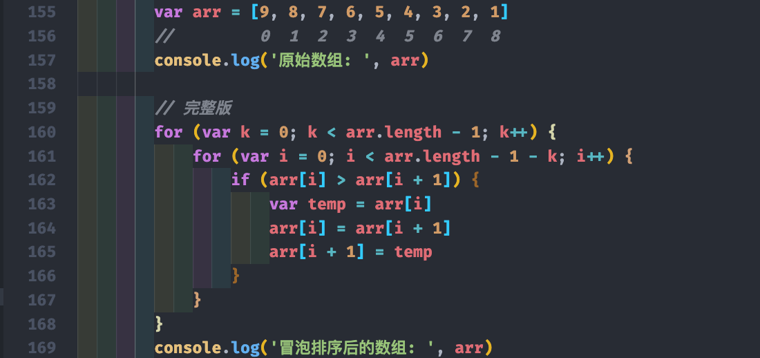 => 以此类推, 直到数组遍历完毕, 最大的一定在最后面