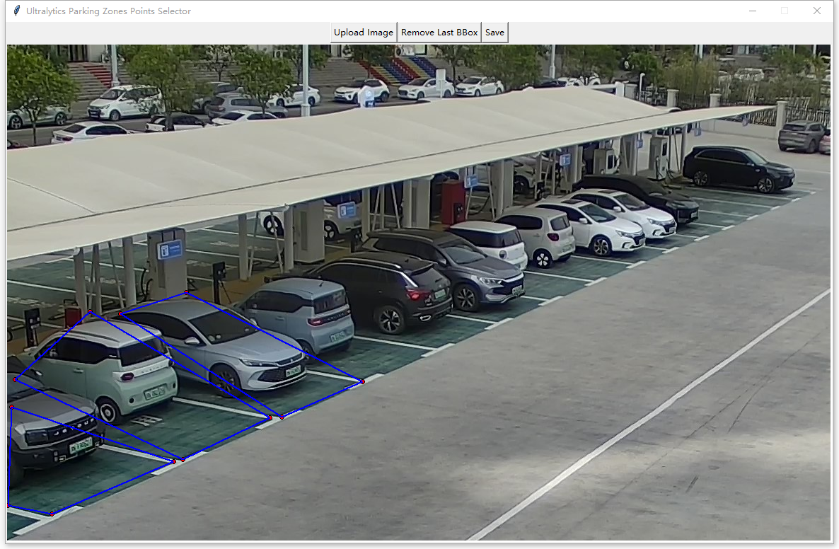 点击"Upload Image",选择一张图片打开,就是停车场的标注界面。使用鼠标点击就可以完成车位标注。