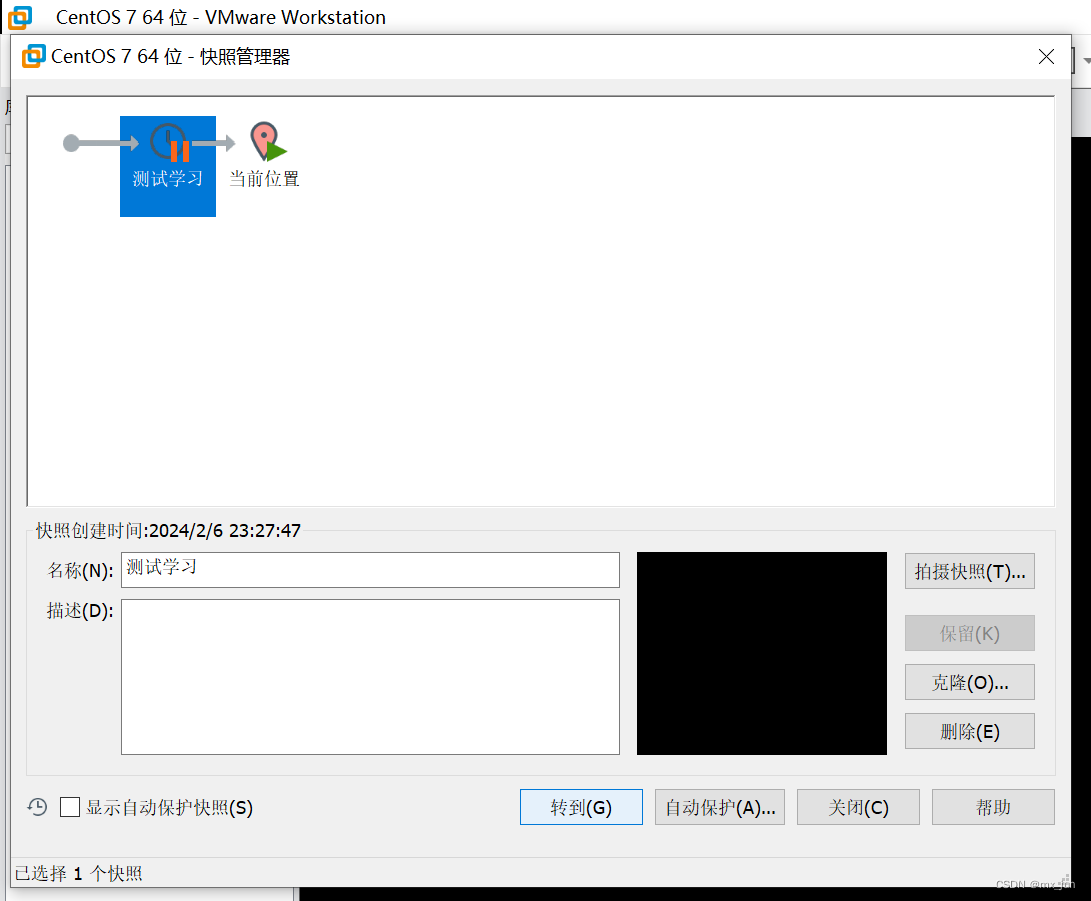 同上打开快照管理器 --> 单机“测试学习”-->点击转到 即可