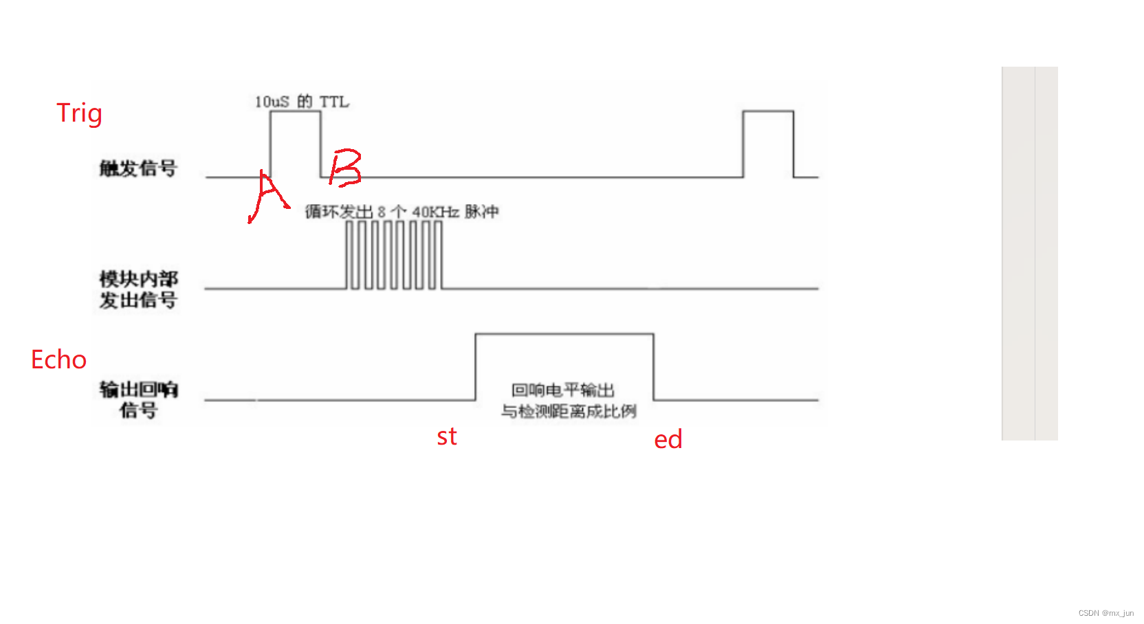 Echo信号,由低电平跳转到高电平,表示开始发送波