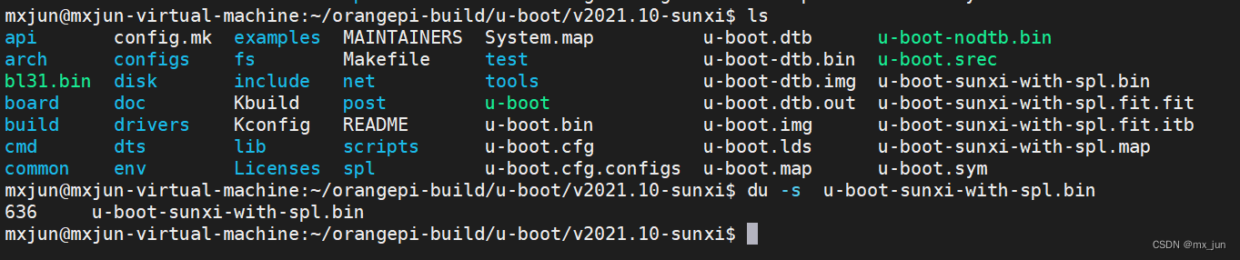 sudo chown mxjun:mxjun v2021.10-sunxi -R#修改所属用户为当前用户(根据实际用户名修改),保证当前用户下权限没有问题