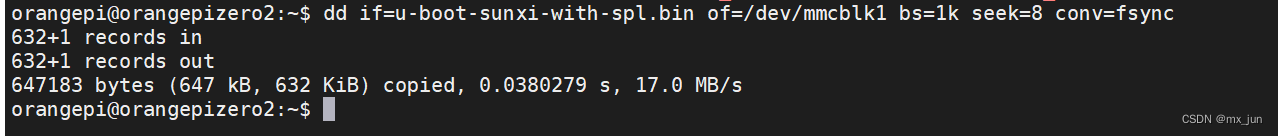 dd if=u-boot-sunxi-with-spl.bin of=/dev/mmcblk1 bs=1k seek=8 conv=fsync
