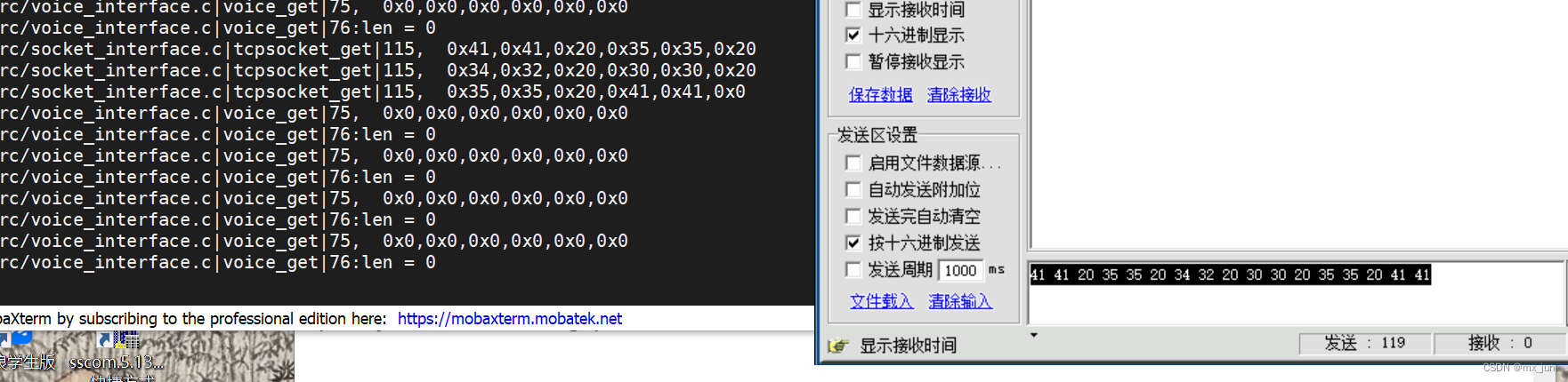 send_msg(mqd,buffer,len); // 注意获取len长度不能使用strlen() --> 0x00 会识别为截止位-->只能读取到三个字节(但不是我们实际的截止位(0x55 0xAA ))