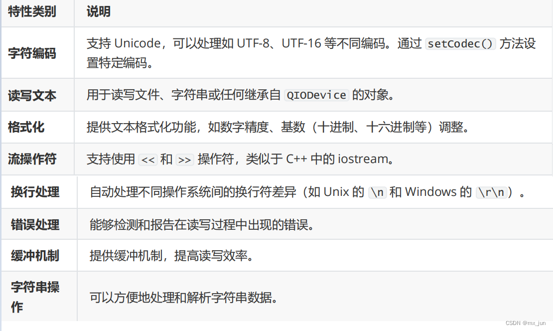 QTextStream的特性: