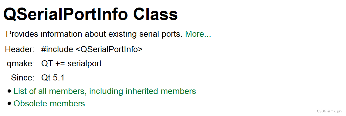 qmake(.pro文件) 里面还得添加: QT += serialport