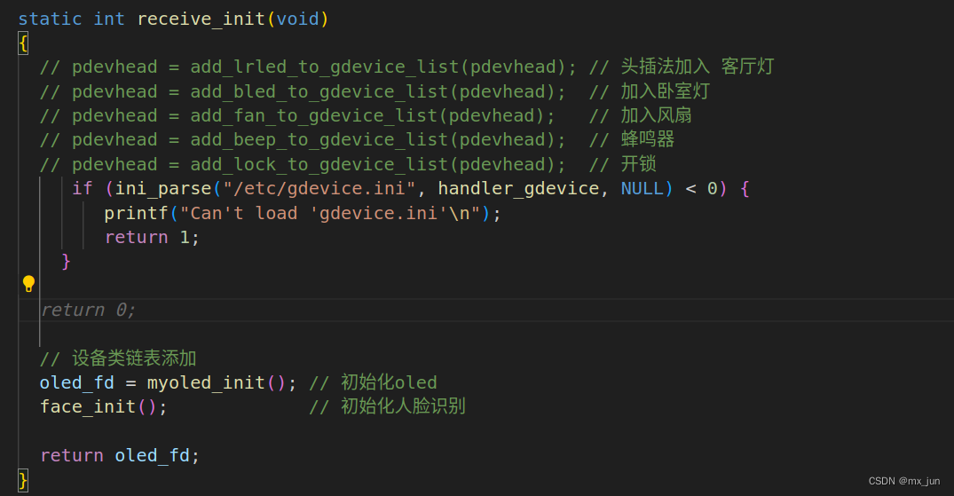 在 receive_interface.c 里面包含头文件,把之前添加的设备类注释掉