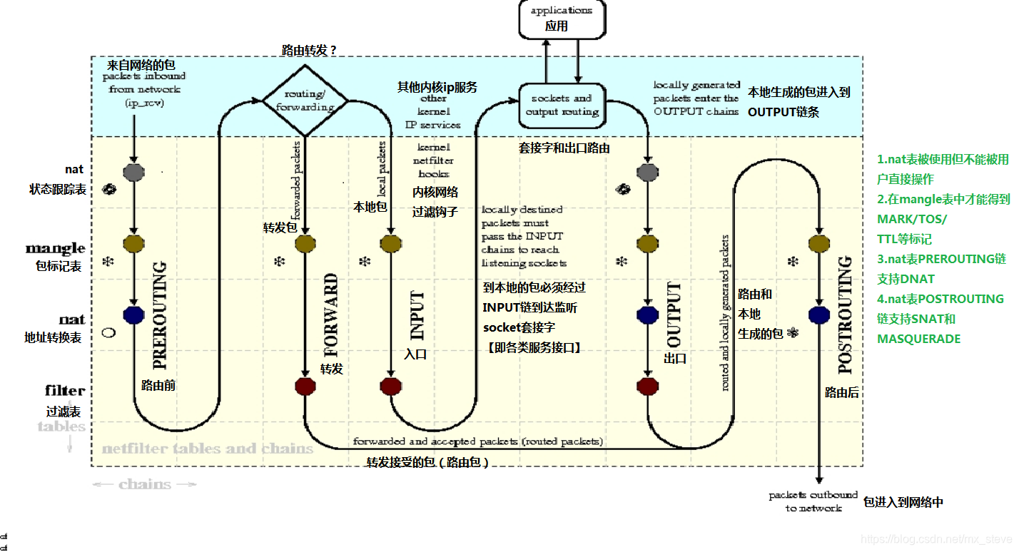 操作服务器,一定会接触到防火墙iptables,先看看原理图,对我们写规则会更有帮助,要注意,数据包不是止进入一张表。