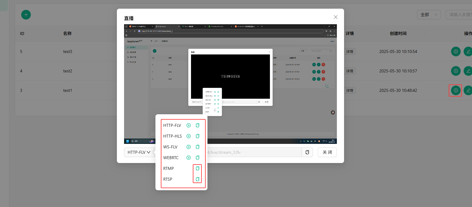 直接去darwin的web选中在直播中点击播放按钮复制播放地址到想要播放的工具