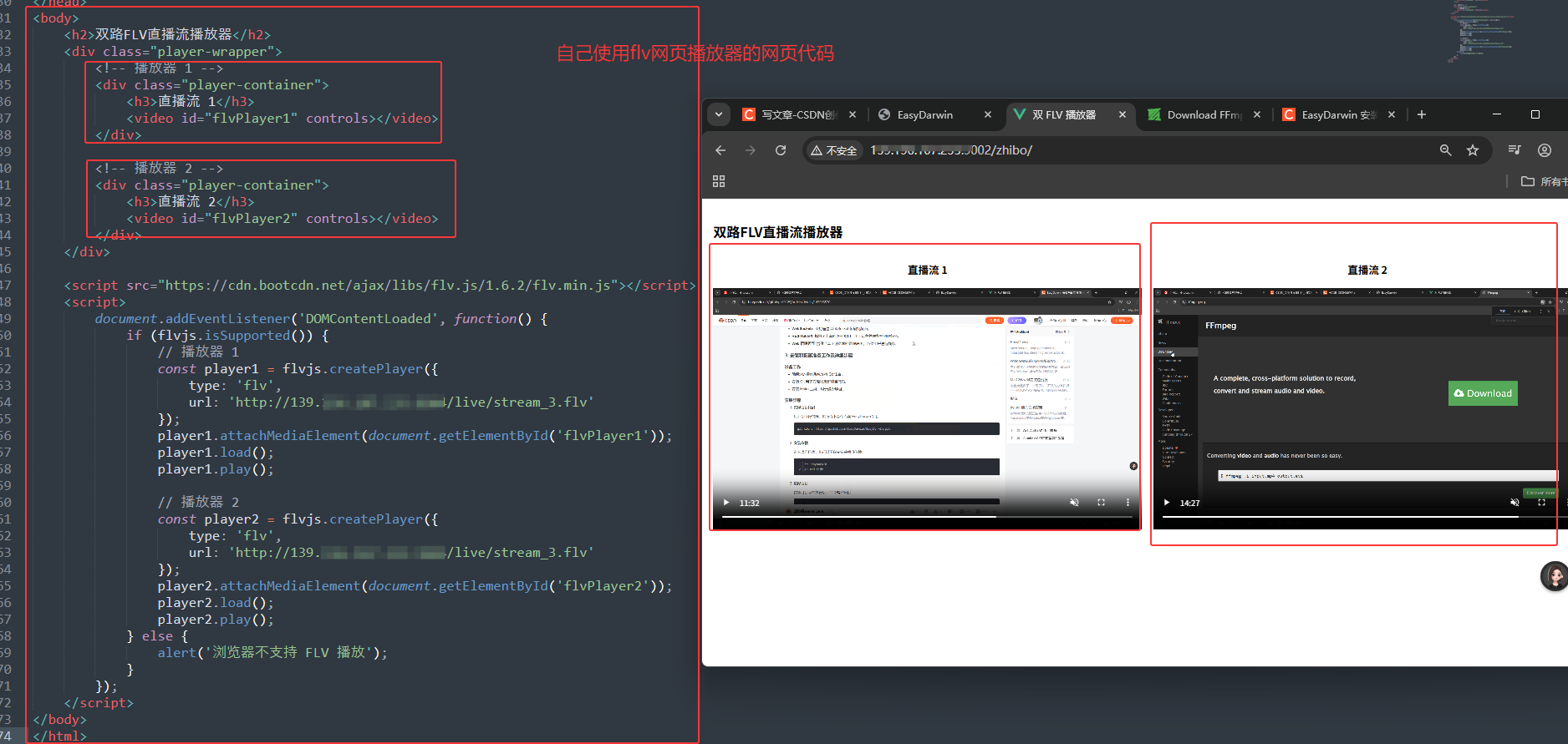 或者使用网页播放器 例如使用flv.js组件进行播放