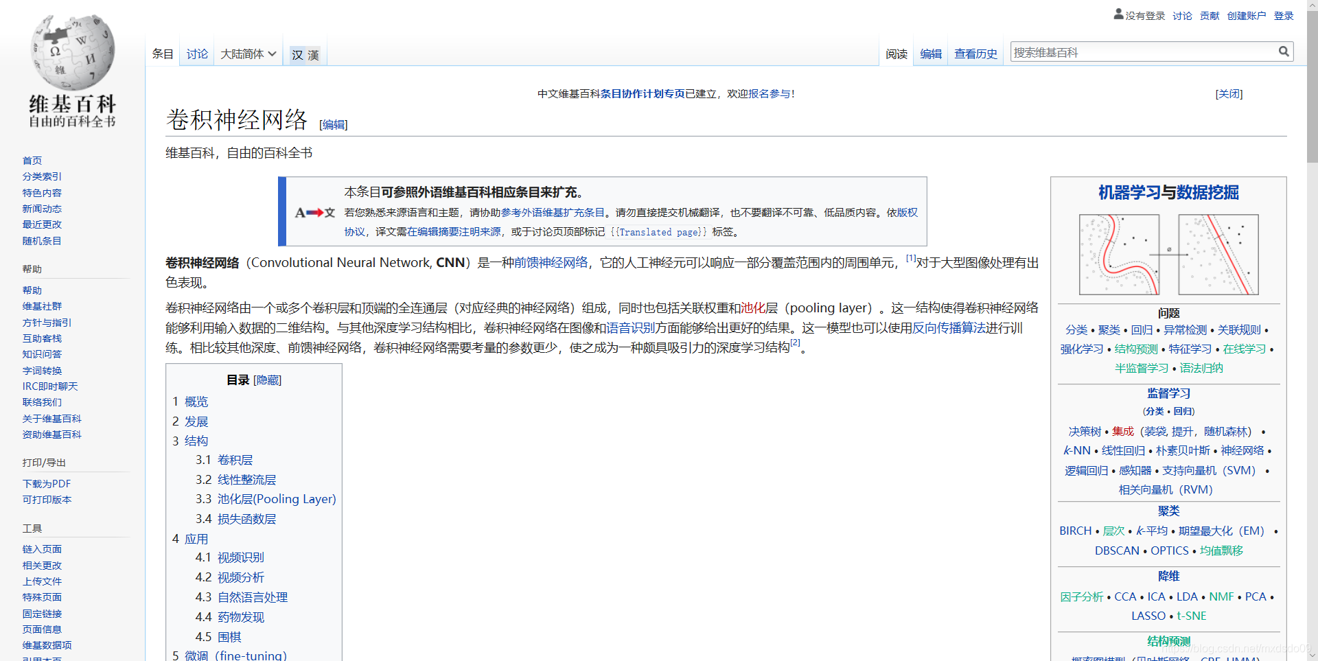 本篇内容主要是把wiki上的CNN(英文版)结合自己理解,翻译了一下,wiki中文版太粗糙了...而且访问还得翻墙