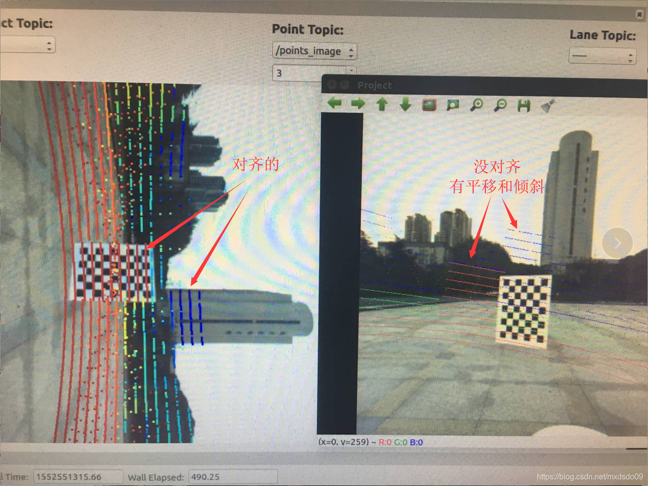 内参和外参采用的就是autoware标定的结果,结果点云投影到图像上是斜的,感觉就是外参不匹配的缘故,困扰了好几天