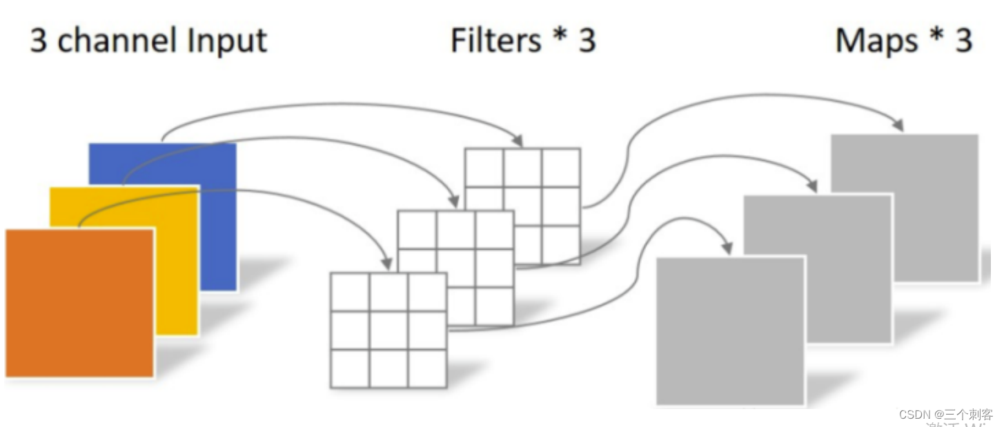 其中一个Filter只包含一个大小为3×3的Kernel,卷积部分的参数个数计算如下(即为:卷积核Wx卷积核Hx输入通道数):