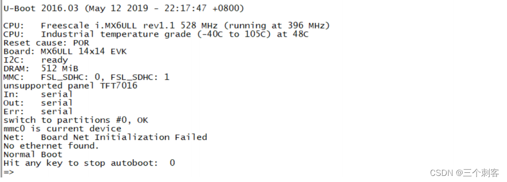 grep -nR "mx6ull_alientek_emmc.h"将u-boot.bin烧写到SD卡测试