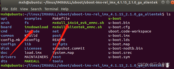 chmod 777 mx6ull_14x14_emmc.sh可以查看这个文件已经变成了绿色,然后执行编译命令