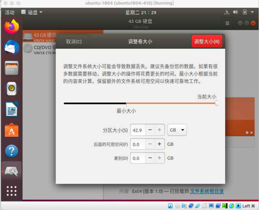 进入ubuntu系统通过磁盘工具可以手动调整大小