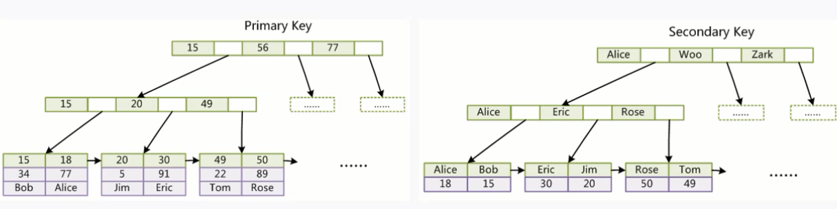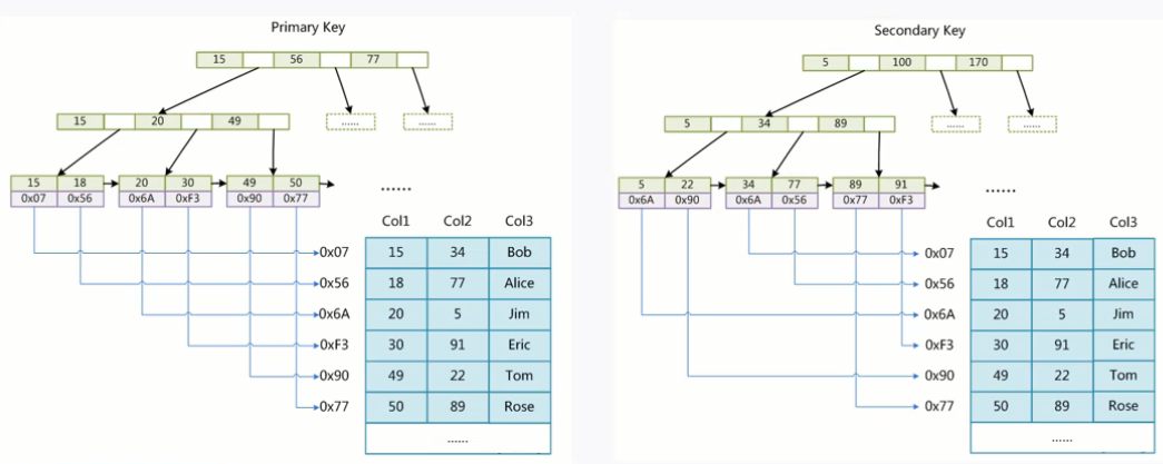 每次SQL语句都会进全表的匹配查询,每一次的匹配都是一次IO的寻道的过程,这个性能极低。这样为什么当数据越来越大的时候,SQL的执行速度变慢的原因也是罪魁祸首,怎么解决:索引。