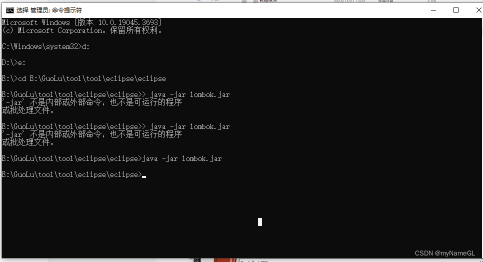 win+R(管理员身份运行)输入cmd进入cmd控制台,进入到eclipse安装目录下,输入以下命令