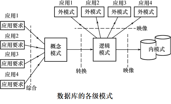 按照7.1.3小节的设计过程,数据库设计的不同阶段,形成数据库的各级模式。如下图所示: