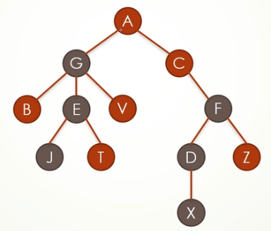A的重儿子是G,G的重儿子是E,E的重儿子随便标个J,C的重儿子是F,F的重儿子是D,D的重儿子是X: