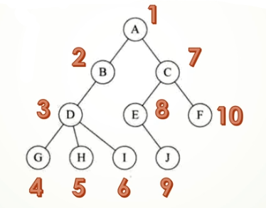 顾名思义,DFS序就是(此处是先根遍历)DFS的顺序。先来个例子,DFS遍历下图的子树,得到的DFS序是 A B D G H I C E J F: