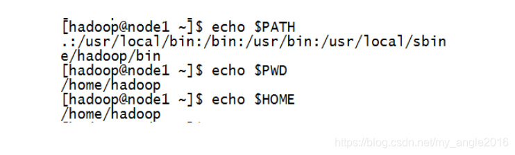 系统环境变量对所有用户有效,如:$PATH、$HOME、$SHELL、$PWD等等,如下用echo命令打印上述的系统环境变量: