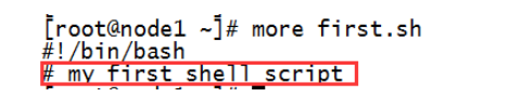 第一行内容在脚本的首行左侧,表示脚本将要调用的shell解释器,内容如下:
