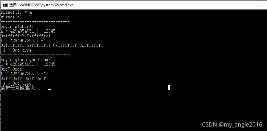 char* 和 unsigned char* 也具有类似的区别,如下面测试程序所示:
