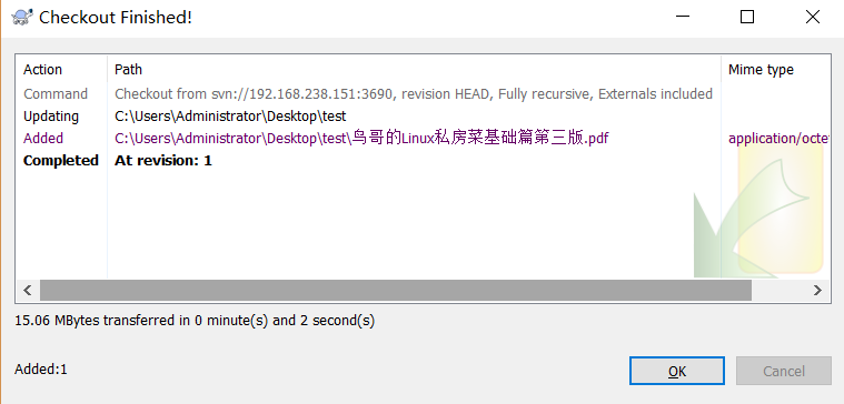 客户端连接地址:svn:// 公网或内网的 IP 地址,有时候需要添加端口号
