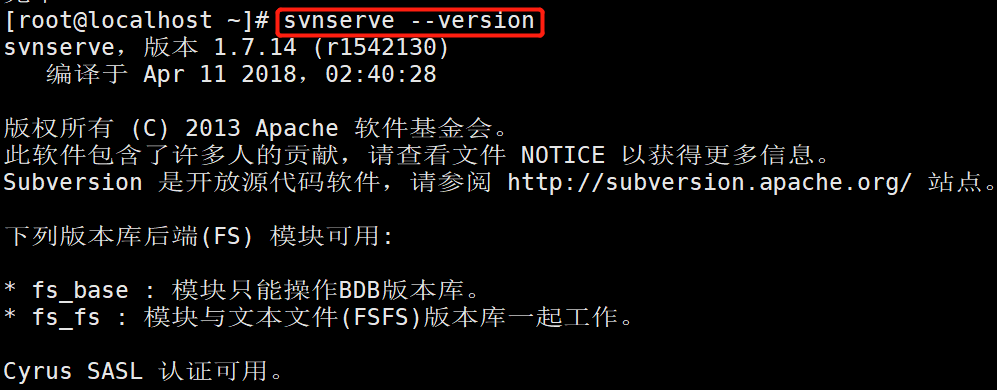 如果已安装 SVN,则会返回版本信息。这时需要卸载旧版本的 SVN。