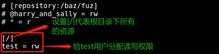 目的是设置哪些用户可以访问哪些目录,authz 文件的内容如下:
