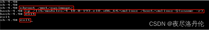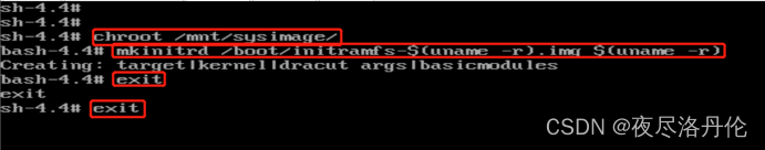 chroot /sysroot/ 执行后会切换到真实的根目录