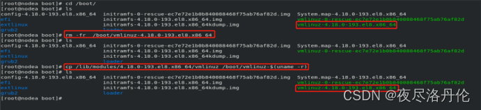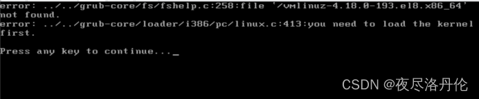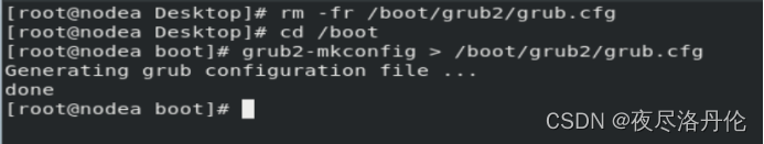 先执行chroot /mnt/sysimage/命令进入磁盘中的系统,然后执行刚才在刚才在主机未关闭时在shell内的修复操作——复制模板文件到 /boot 下再输入两次exit即可修复: