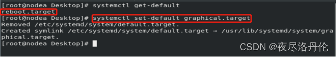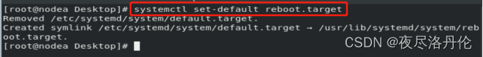 这里更改后,会移除原来的default.target文件到reboot.target的链接,会创建default.target文件到graphical.target的链接,这就表示修改系统的启动级别从重启模式到有图形的网络模式: